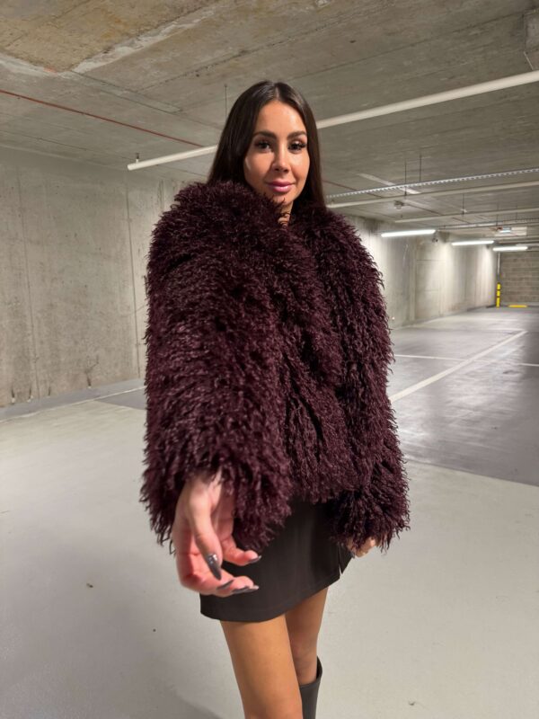 Tento mäkký kožuch je v tejto sezóne skutočne výraznou a módnou voľbou. Vyniká svojím mäkkým, dlhým vlasom. Je to kabát s golierom, ktorý sa zapína na háčiky a očká. Má dlhé rukávy a golier.