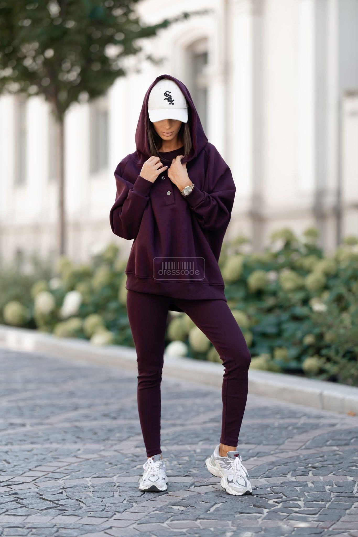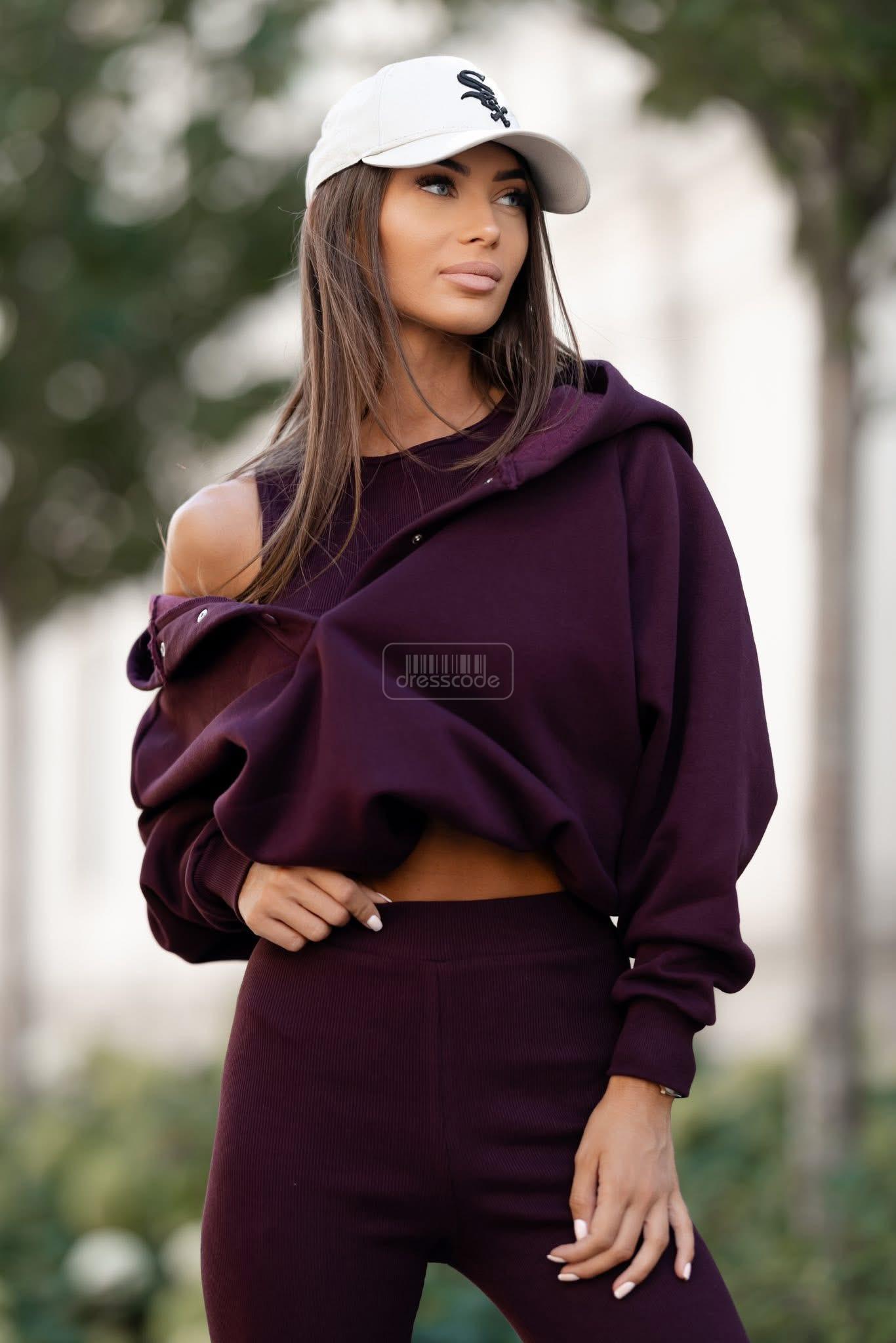Súprava 3v1 sa skladá z mikiny, topu a legín s rebrovanou úpravou. Tento model je ideálny na každodenné nosenie, pretože je vyrobený z príjemnej a príjemnej látky. Noste spolu alebo oddelene.