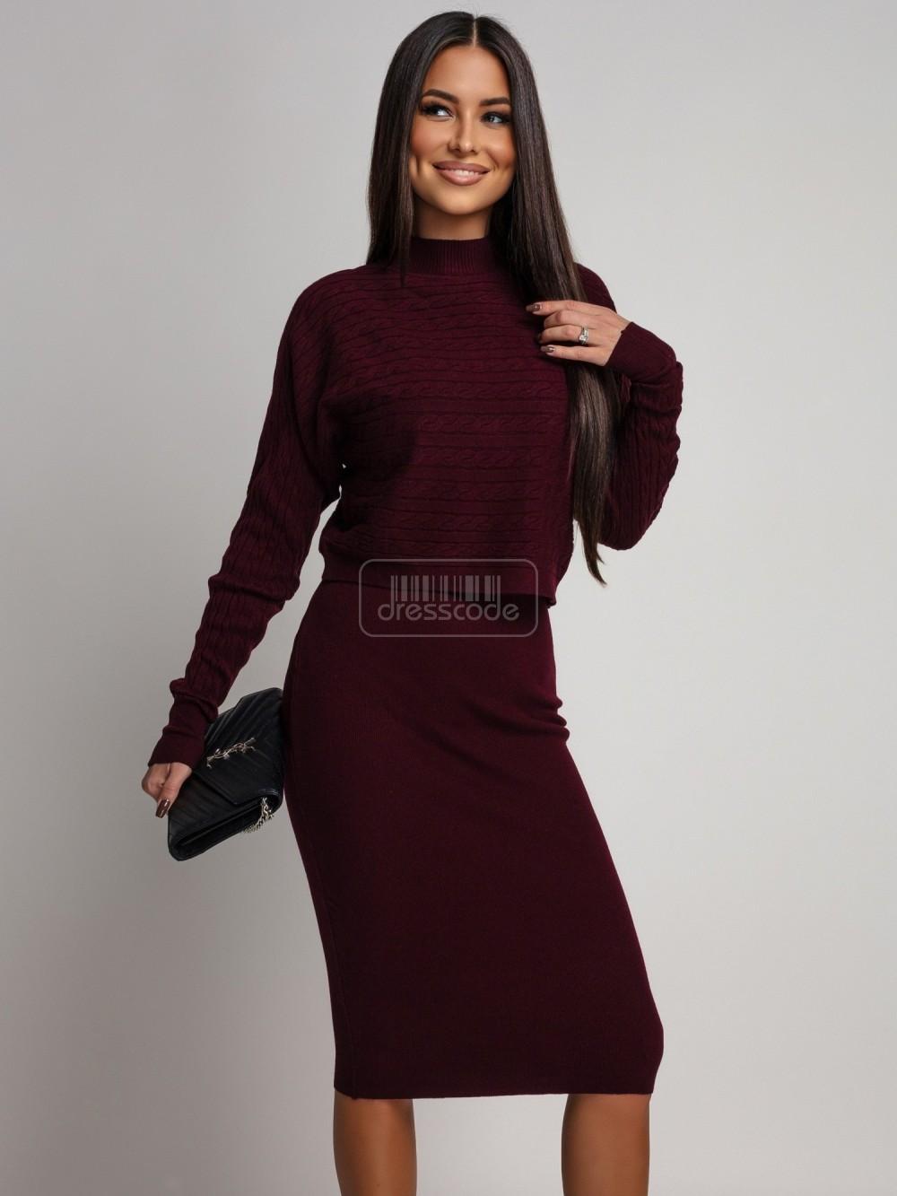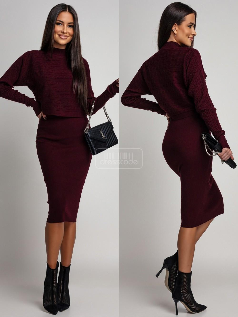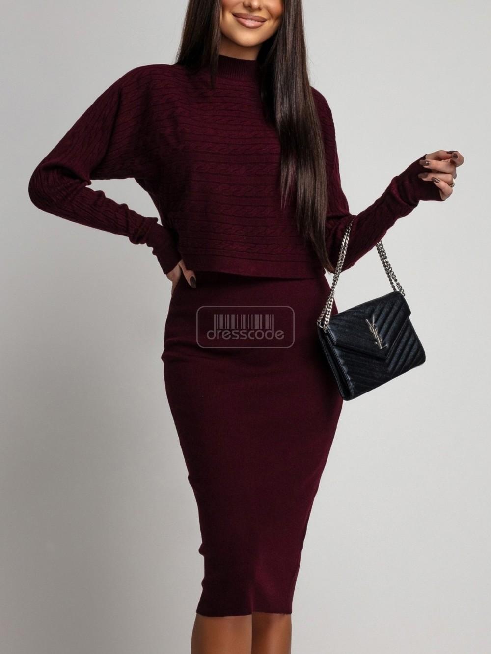 DomovŠaty Komplet šaty + sveter Perfect Match bordó