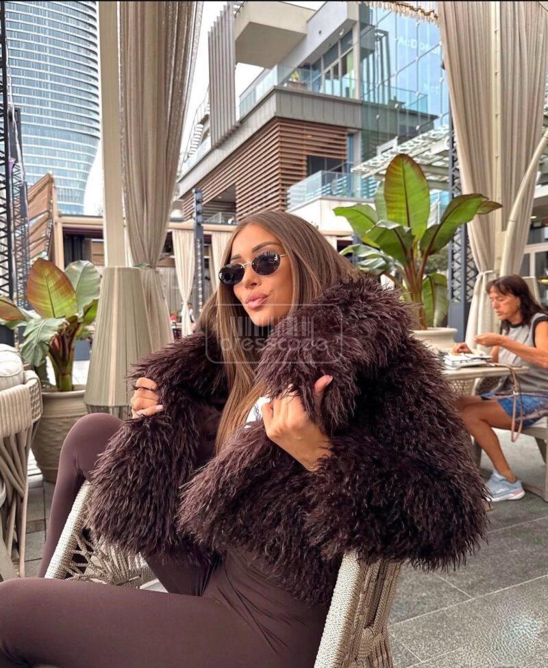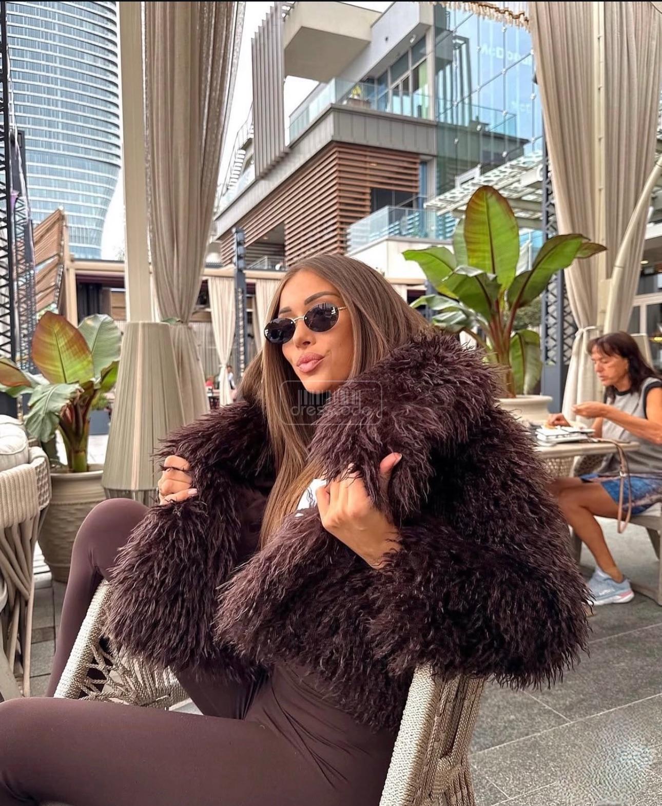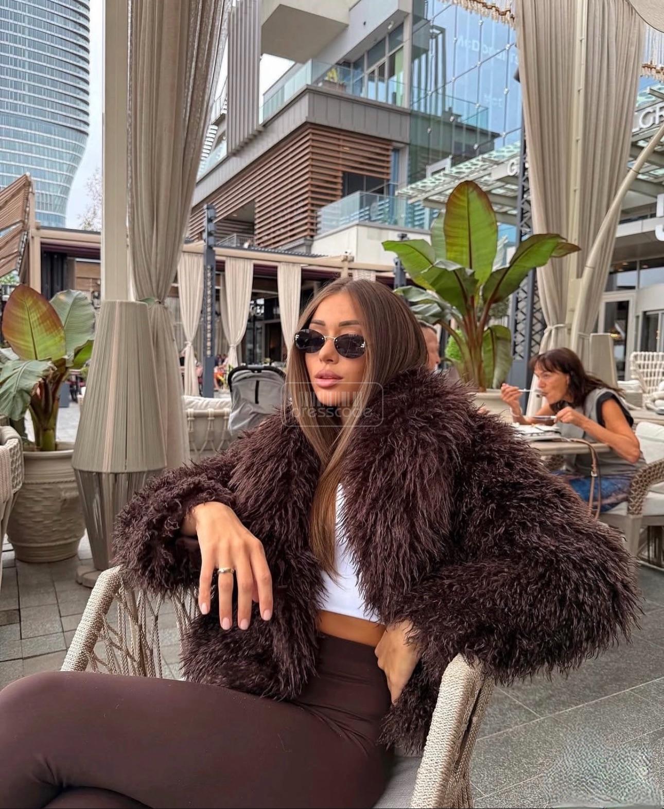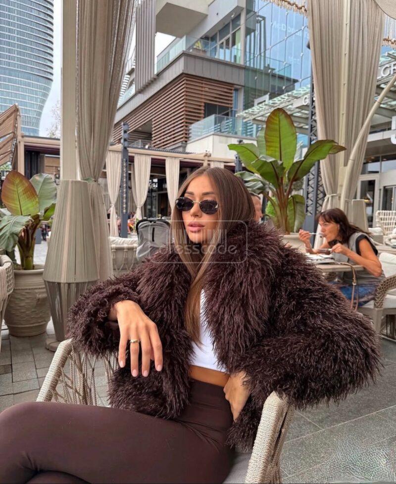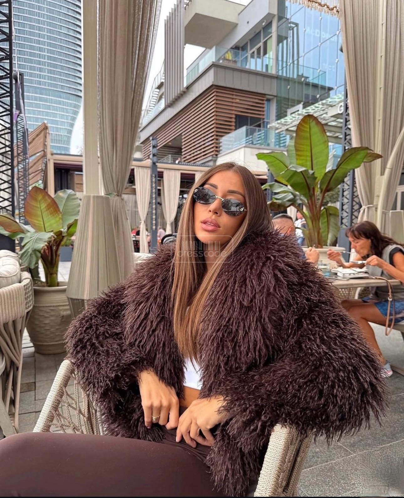 Tento mäkký kožuch je v tejto sezóne skutočne výraznou a módnou voľbou. Vyniká svojím mäkkým, dlhým vlasom. Je to kabát s golierom, ktorý sa zapína na háčiky a očká. Má dlhé rukávy a golier.