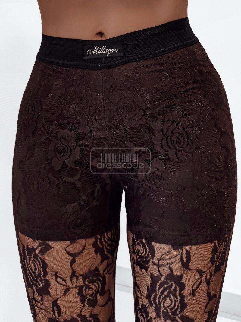 Hladký povrch, elastická tkanina. Stredne vysoký strih. Široké nohavice.