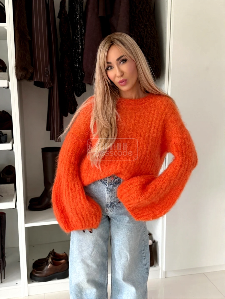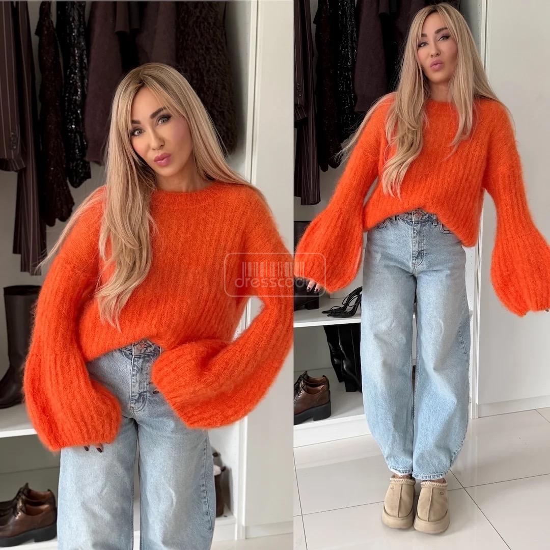DomovNOVINKY Mohérový sveter Zvonček Pomaranč
