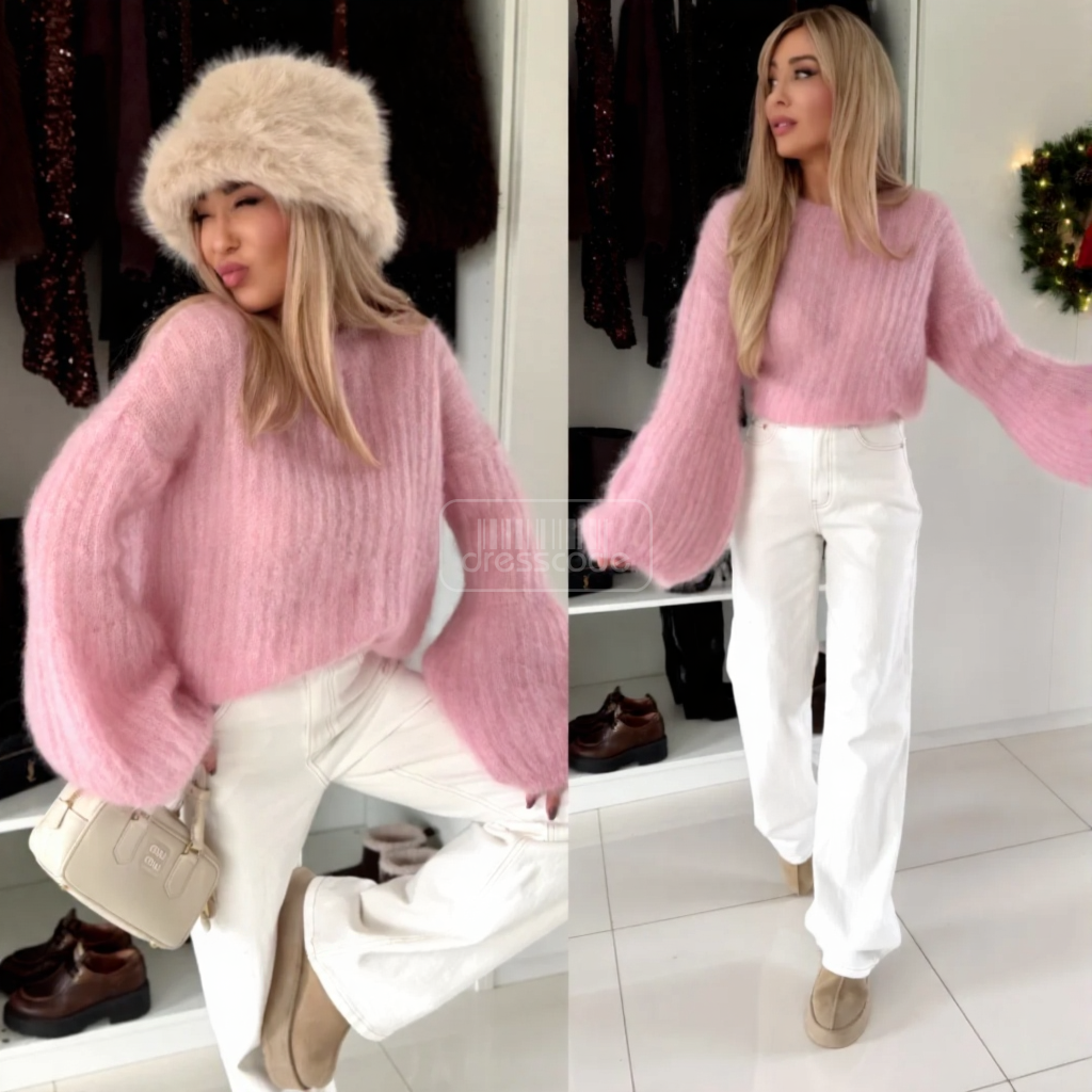 Mohérový sveter Zvonček ružový