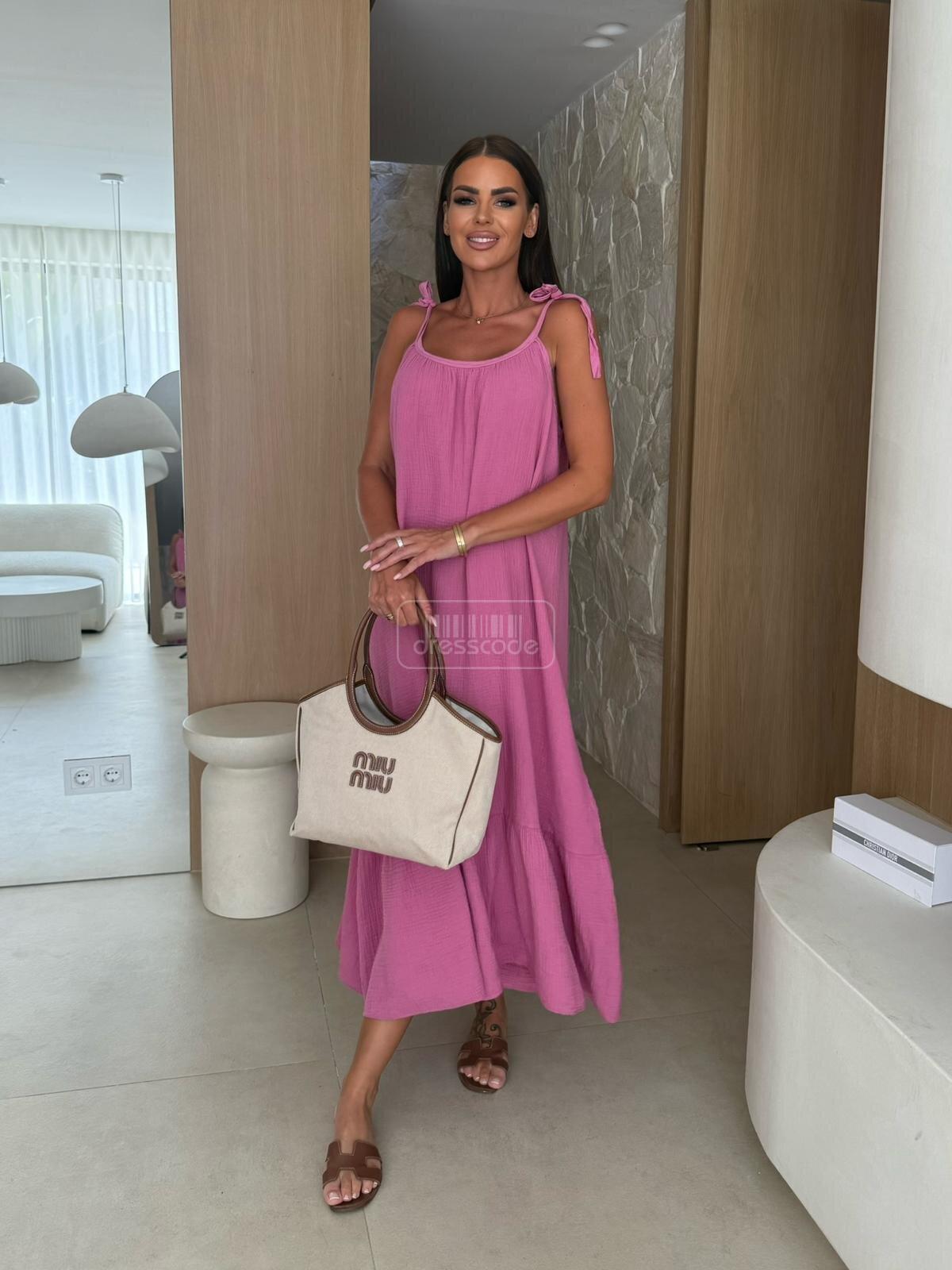 Mušelínový materiál, krásne zvýraznený výstrih. Midi dĺžka.