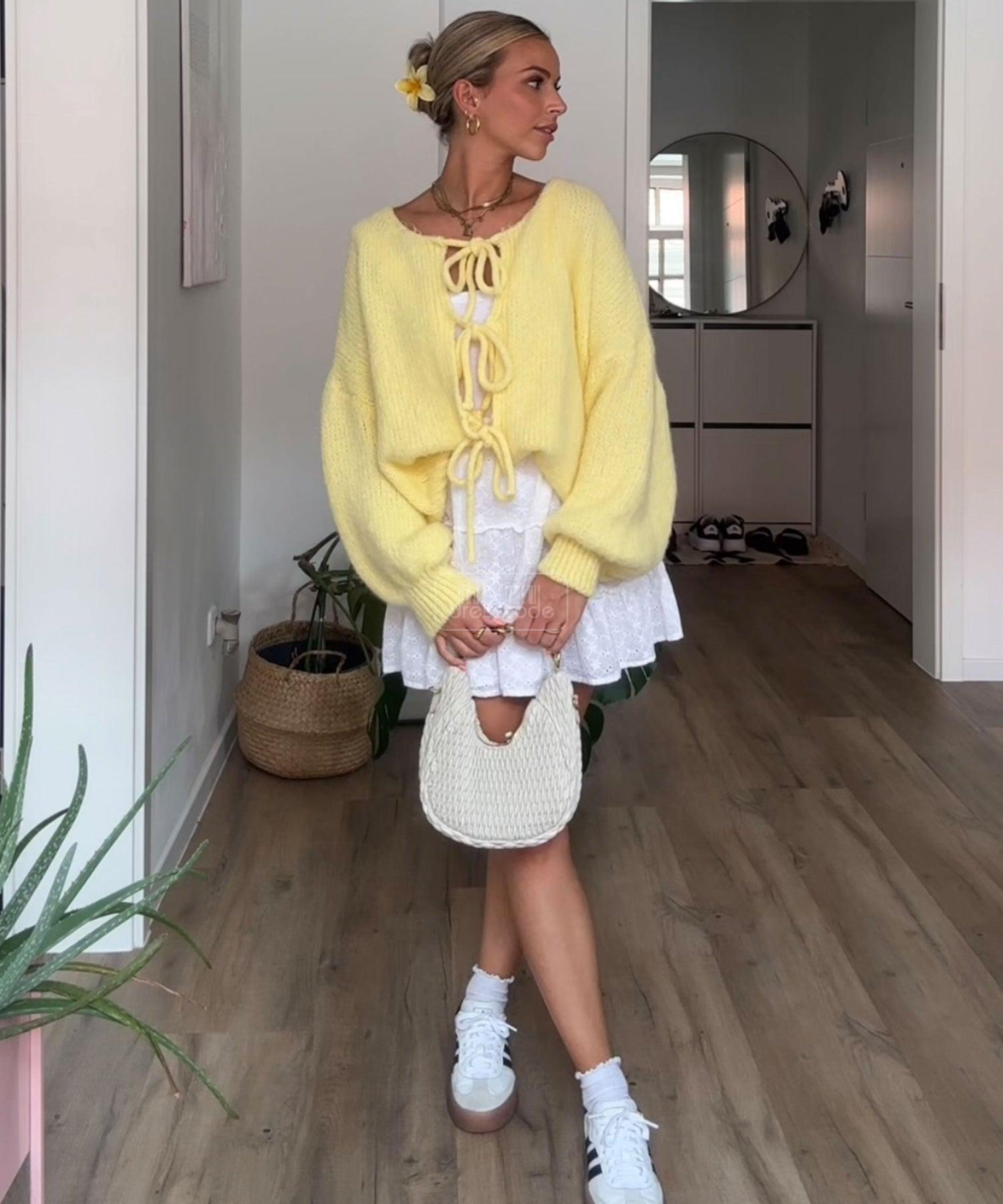Obojstranný kardigan na viazanie citrónikový