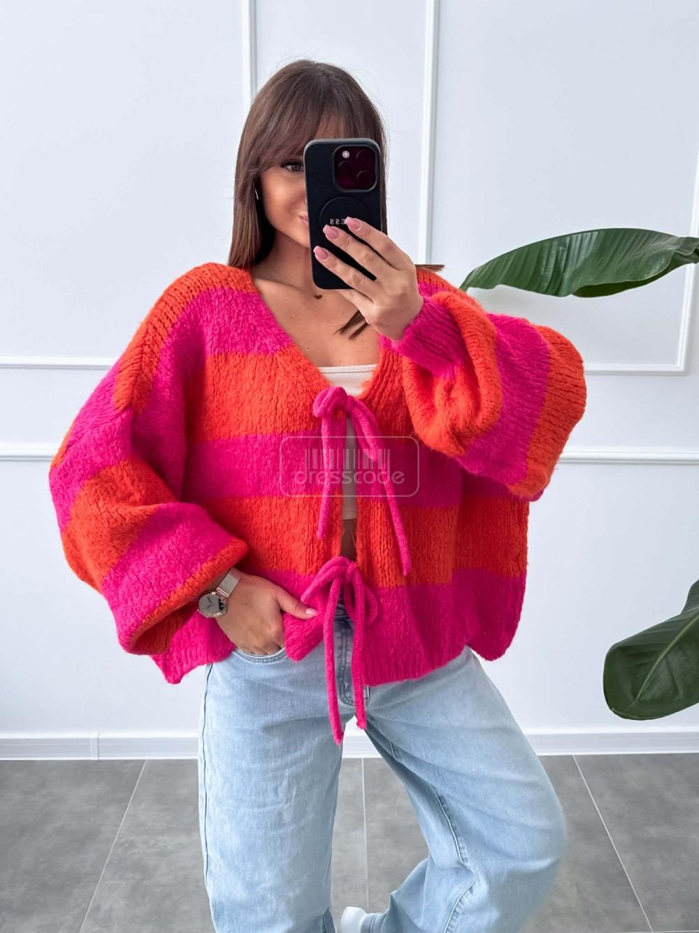 DomovNOVINKY Obojstranný kardigan na viazanie neon