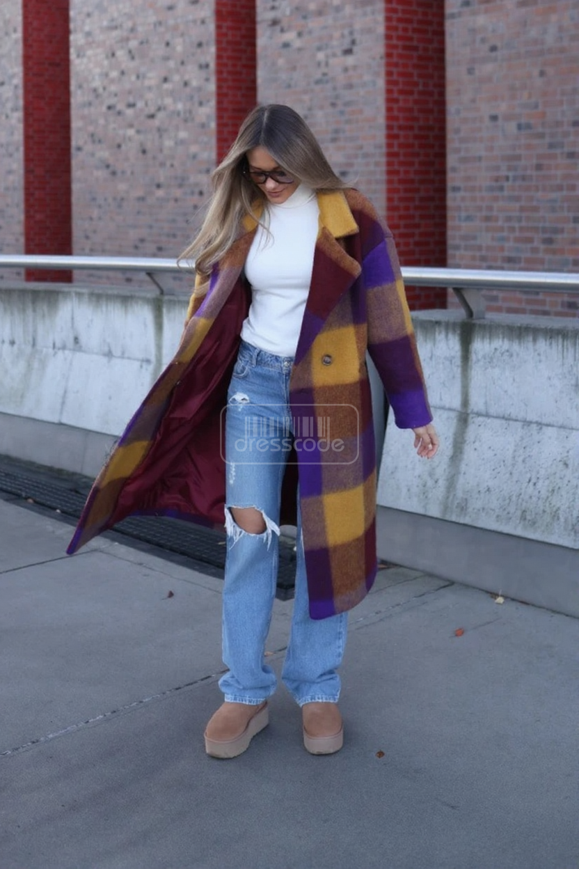 Tento nadrozmerný kockovaný kabát je módnou a pohodlnou voľbou pre tých, ktorí milujú ležérny štýl s klasickým nádychom. Voľný strih zaisťuje pohodlie a umožňuje rôzne možnosti štýlového nosenia – vyzerá skvele cez sveter alebo ľahkú bundu. Kockovaný vzor dodáva výrazný nádych a nadrozmerný strih z neho robí perfektnú voľbu na chladnejšie dni – štýlový a zároveň ležérny.