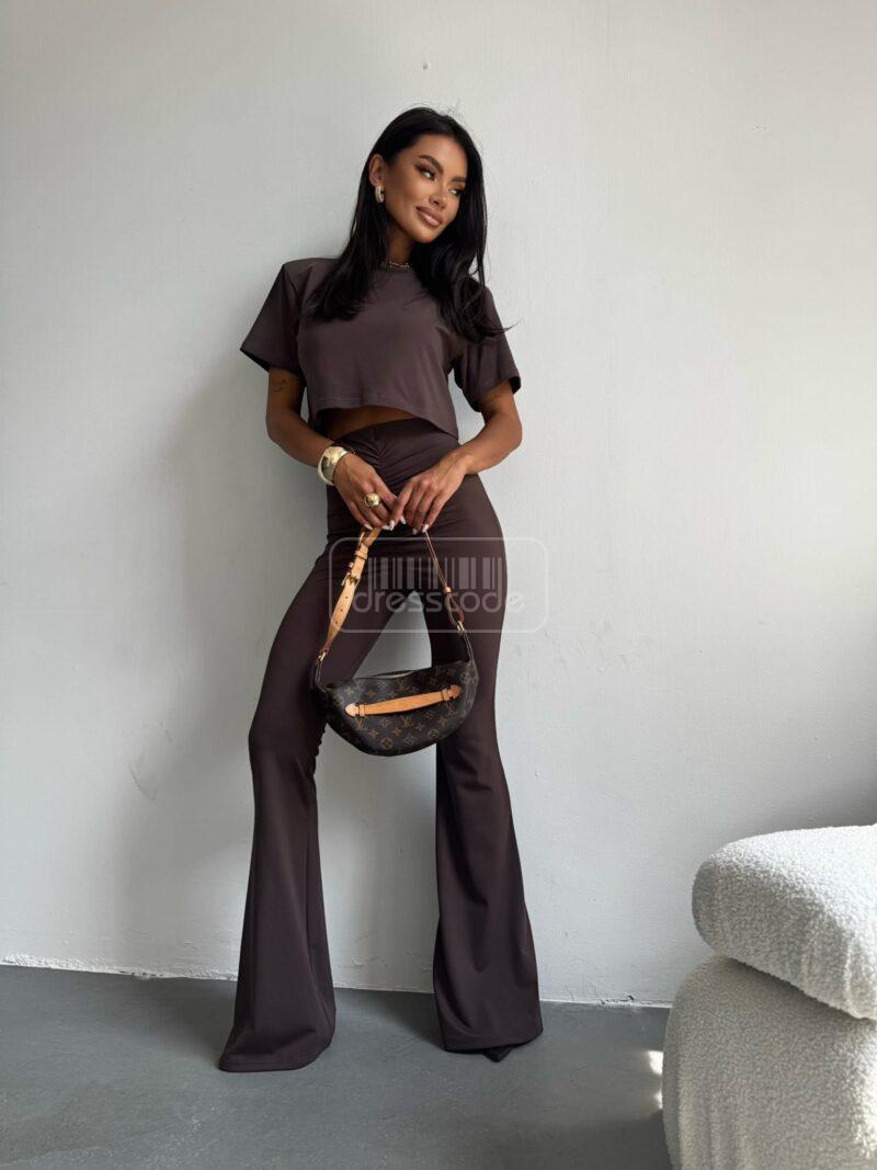 Premiové elastické legíny zvony hladké čokoládové