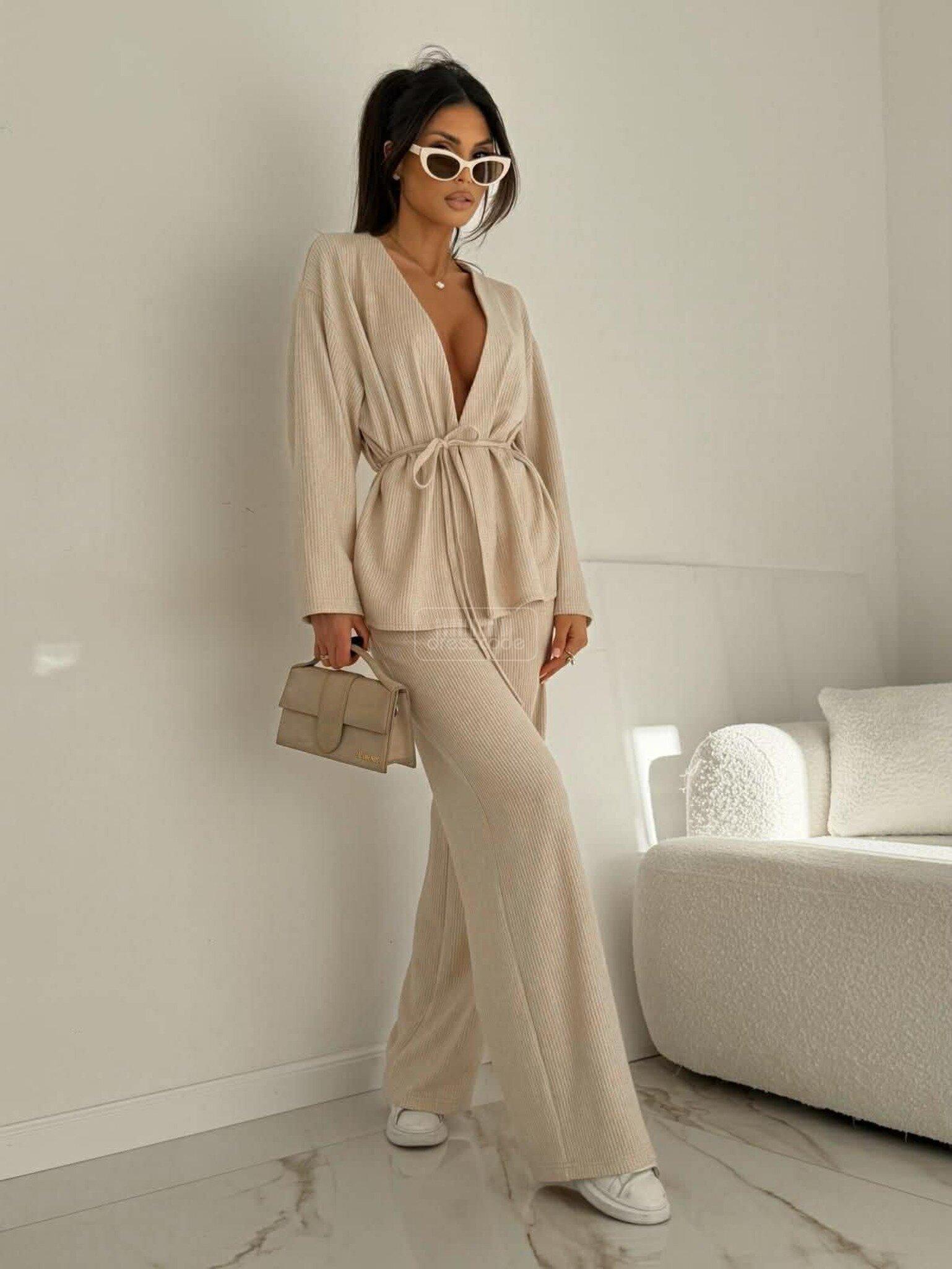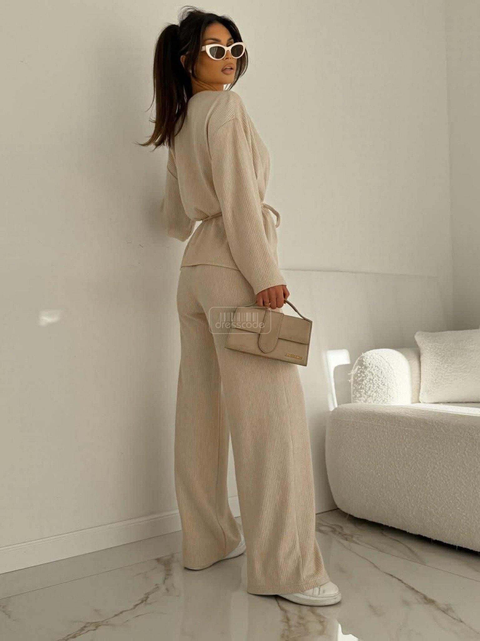Štýlový a pohodlný komplet so širokými nohavicami a zaväzovaním v páse – ideálny na každú príležitosť. Tento priliehavý overal kombinuje eleganciu s každodenným pohodlím.