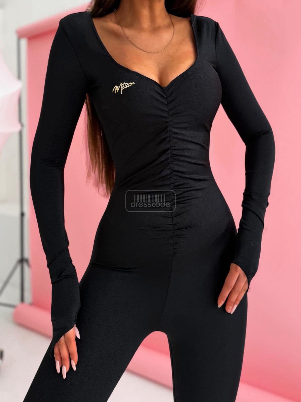 Overal  je štýlovou a nadčasovou voľbou pre ženy, ktoré si cenia pohodlie a výrazný vzhľad. S dlhými rukávmi, zvonovými nohavicami a hlbokým výstrihom do V lichotí postave a opticky predlžuje nohy a pás. Je vyrobený z mäkkého, elastického materiálu, ktorý sa dokonale prispôsobí telu.