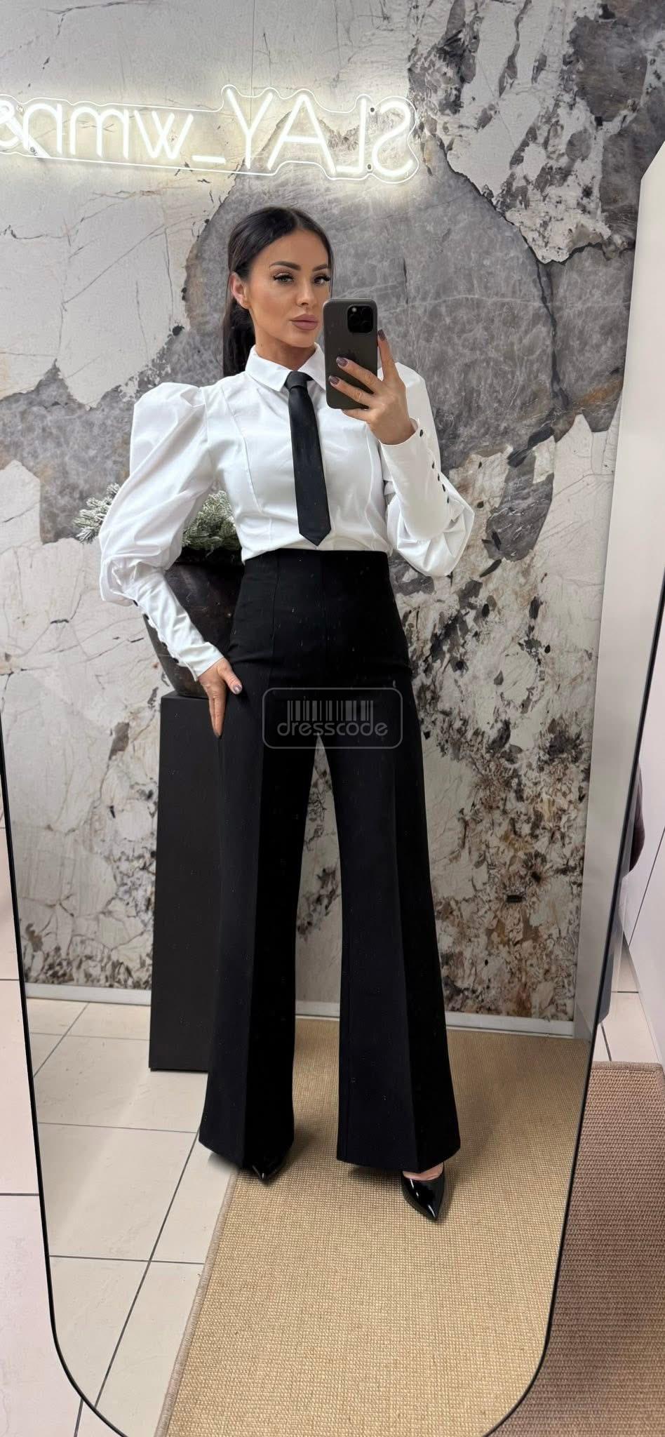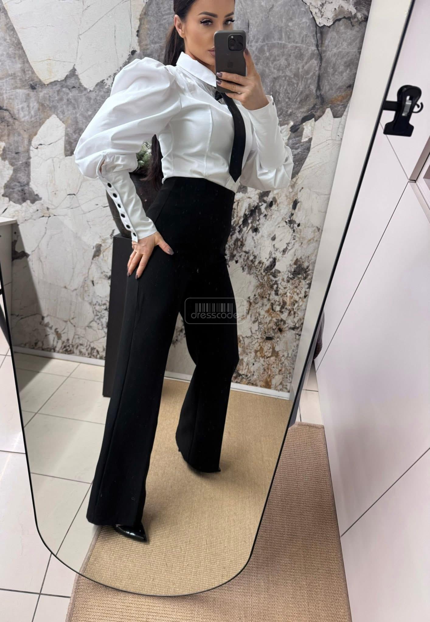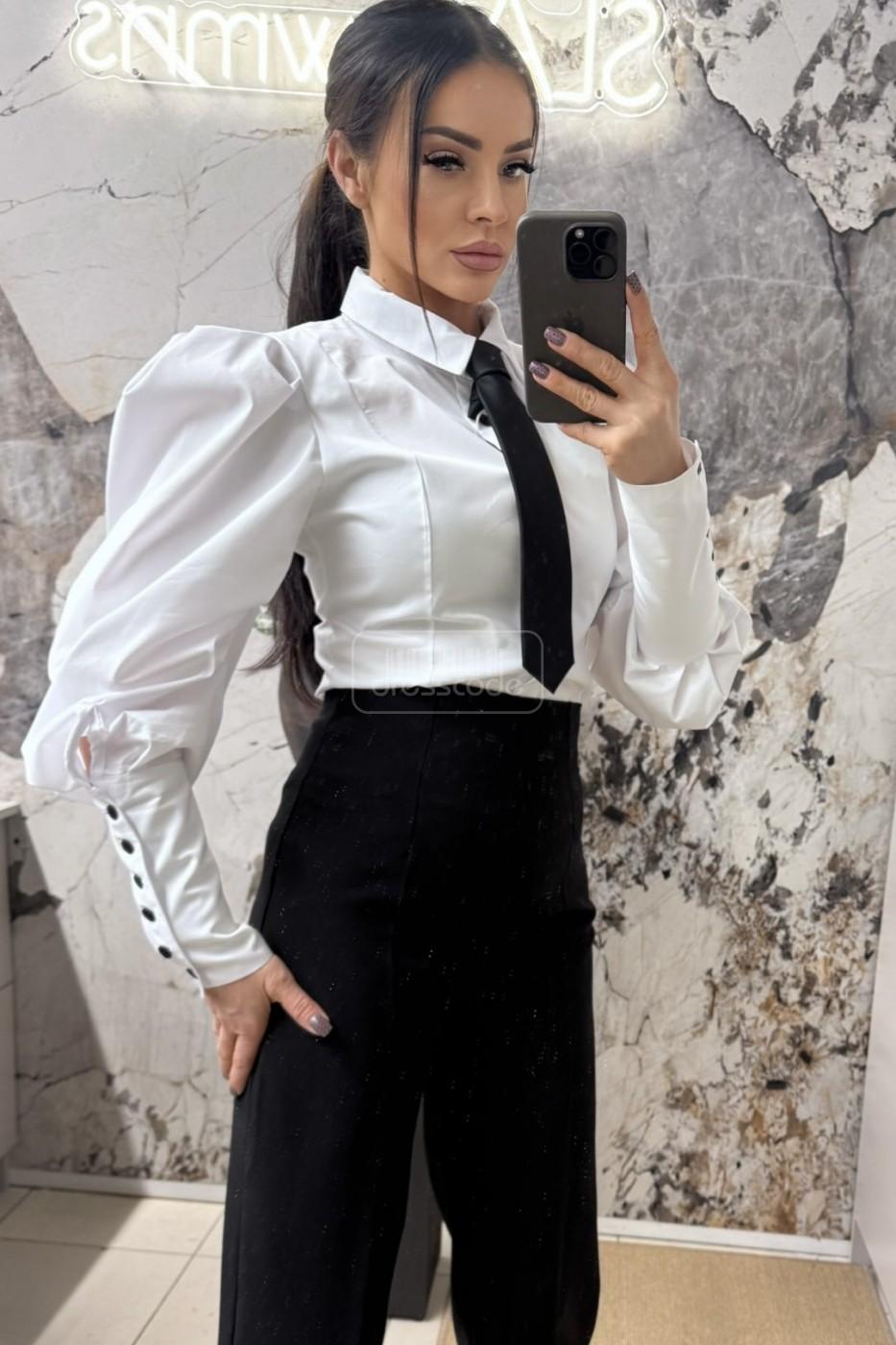 Košeľa s nafúknutými rukávmi a kravatou je elegantná a štýlová voľba, ktorá kombinuje klasický strih s moderným nádychom. Nafúknuté rukávy dodávajú košeli jedinečný, romantický nádych, jemne rozširujú siluetu a pútajú pozornosť. Kravata, ktorá je súčasťou dizajnu, dodáva nádych formality a celkovému vzhľadu dodáva nádych šiku a elegancie. Táto košeľa je ideálna do kancelárie aj na večerný výlet.