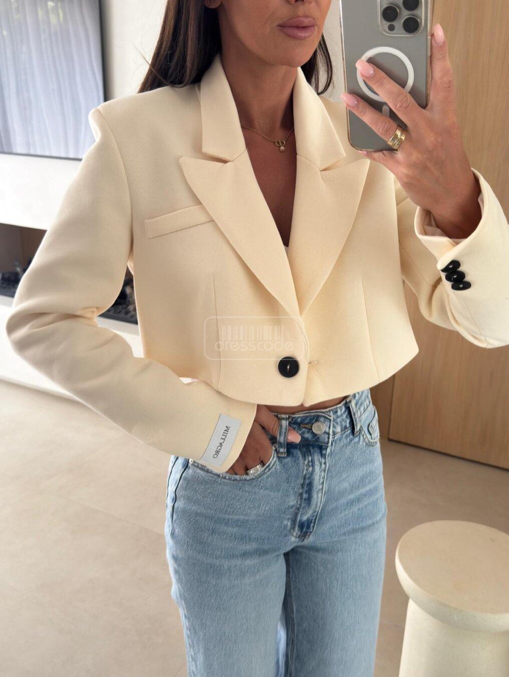 Mikinový vzhľad, krátka dĺžka. Nastaviteľné zapínanie na gombíky.