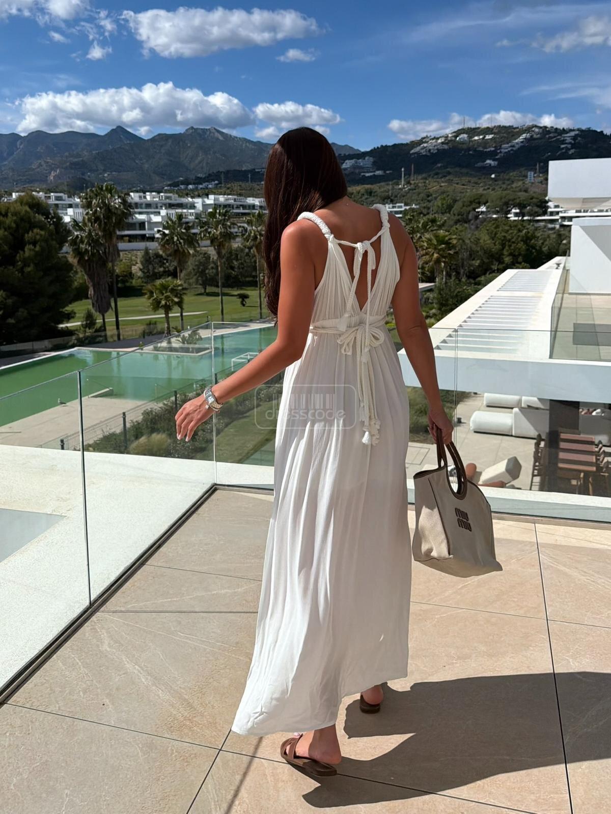 Tieto šaty sú elegantné maxi šaty, ktoré zaujmú svojím ženským strihom a jedinečnými detailmi. Sú vyrobené z ľahkej, splývavej látky, majú hlboký výstrih do V a výrazné, zapletené ramienka. Pás pod prsiami krásne tvaruje postavu, zatiaľ čo vysoké bočné rozparky dodávajú ľahký a moderný nádych. Sú perfektnou voľbou na letné oslavy a večery, pretože kombinujú pohodlie so sofistikovaným štýlom.
