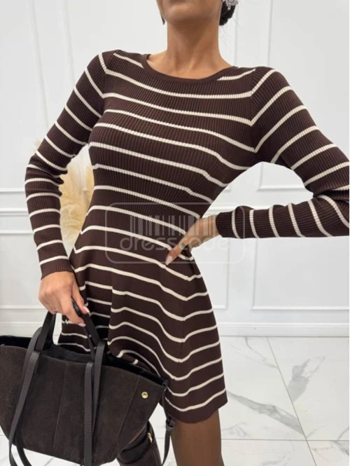 Čokoládové šaty Hugo majú rozšírený strih s módnymi pruhmi, ktoré jemne zvýrazňujú pás a dodávajú siluete nádych ľahkosti. Vyrobené z mäkkého materiálu zaisťujú celodenné pohodlie. Sú ideálne na každodenné nosenie, do práce alebo na stretnutia s priateľmi a kombinujú klasický štýl s moderným vzorom. Čokoládové šaty Hugo 09