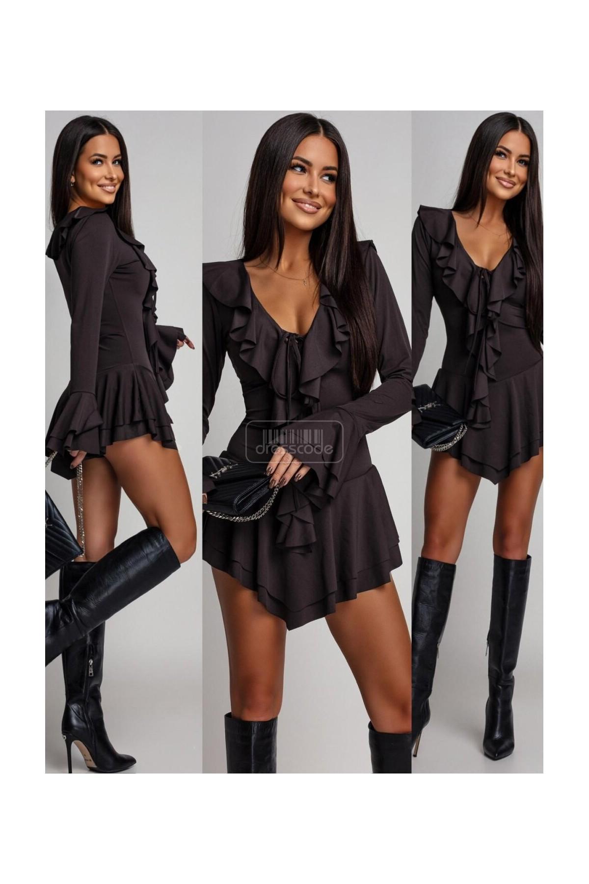 Tento dámsky krátky overal je dokonalou zmesou ľahkosti, ženskosti a moderného dizajnu. Roztiahnuté nohavice mu dodávajú ležérny nádych, zatiaľ čo volániky vpredu dodávajú jemný šarm a nádych vizuálnej ľahkosti.