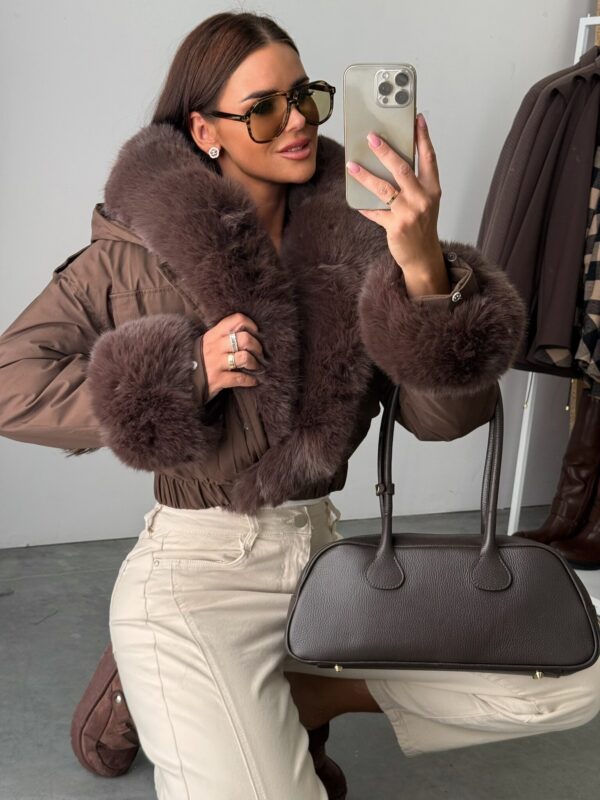 Zateplená bundička s kožušinkou čokoládová 99.00€