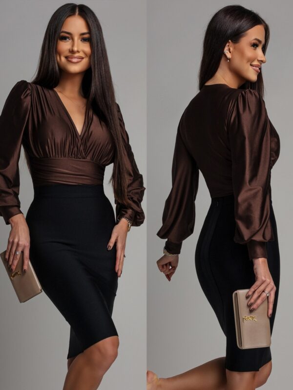 Sveter voľného strihu a dlhej dĺžky. Roztrhaný materiál. Hrubšia väzba látky.