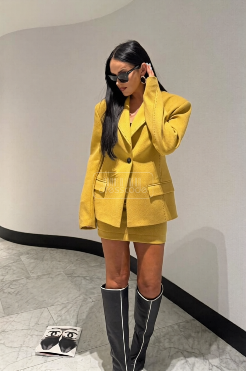 Vlnená sako LA MILLA v horčicovej farbe s prešívaním